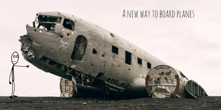 I propose a radical new way of boarding planes. Instead of going higgledy piggledy and filling up the plane