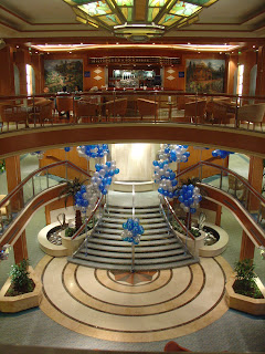 The toilets were certainly ship shape, but there was a queue of 4 women in front of me and only 3 cubicles. This was toilet ‘rush hour’ – between the main and dessert. We had been directed to use these toilets by the banquet staff and I was surprised that they didn’t make more toilets available. I can understand that they didn’t want people wandering over the ship, but 3 cubicles is pretty measly for a whole banquet hall of people. I wonder how they fare when the ship is full?
