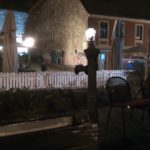 And so I’m out, alone, being smoked on, sitting between a statue of a naked woman leaning out of a window – it is her buttocks that I am between, I mean, I’m not between her buttocks, her buttocks are immediately to my left – and an old pump – not a euphemism – to my right. And the warm voices of the men surround me, these big Croatian men with their neat beards and large voices and leather jackets, really just like out of a Bond movie! And the cathedral is lit up on the skyline and everybody, fucking everybody, is smoking.