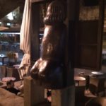 I am sitting between the buttocks of a naked statue and an ancient water pump and in the midst of, alternately, the smell of herbal cigarettes and fried pastry.