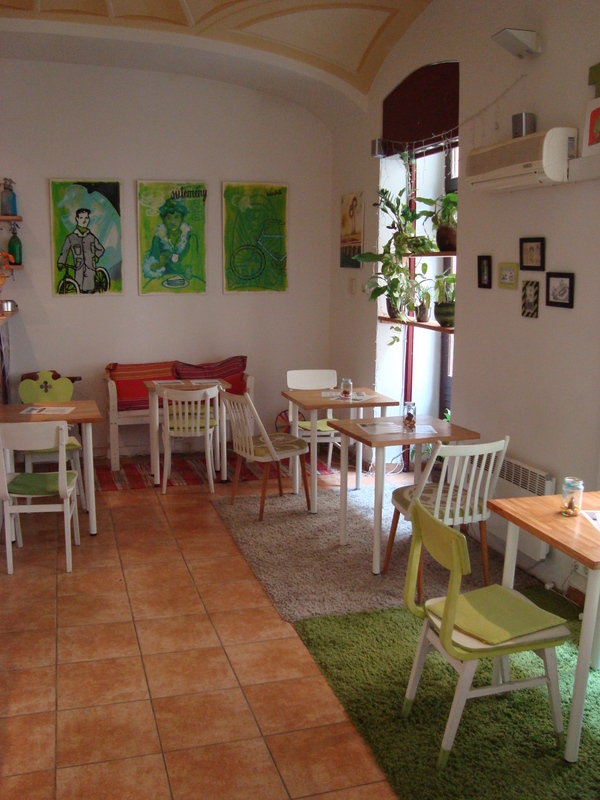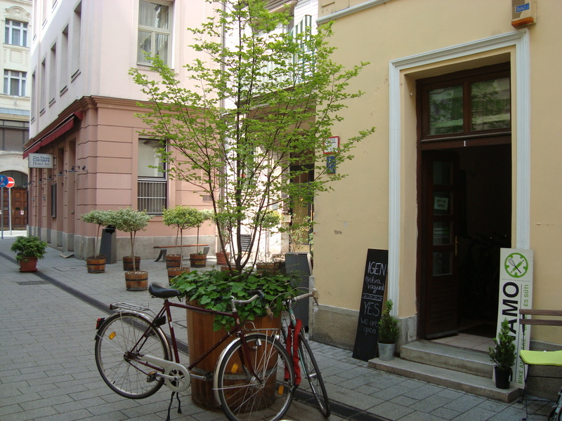 In a small courtyard in Budapest, not far from the City Market, down a little cobblestone alley in a quiet part of town where the nicer B&Bs are located, you can find the tiny Dynamo Bike and Bake.
