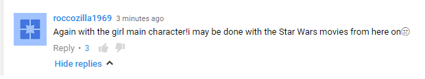 It may have escaped your notice that a new Star Wars was due out this year. It will not, however, escape your notice that we’ve got another female lead, and a handful of ‘people’ have taken that badly in the vein of, “oh the feminists are ruining sci-fi”.